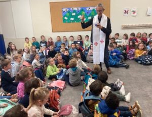 Le mardi 16 septembre, père Didier est venu bénir nos cartables : tous les enfants rassemblés, nous avons chanté, souhaité une bonne année scolaire à tous et remercié Jésus pour tous les bons moments passés à l’école, pour les nouvelles choses que nous allons apprendre cette année.