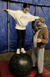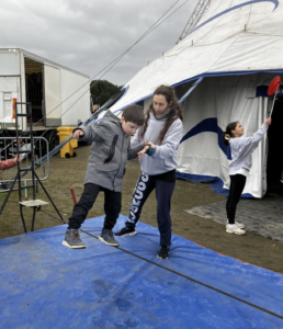 Jeudi 12, nous découvrons les ateliers d’équilibre : le monocycle, le rouleau, la boule et le fil de fer ! Jordan, le cow boy, a fait une démonstration de lasso !