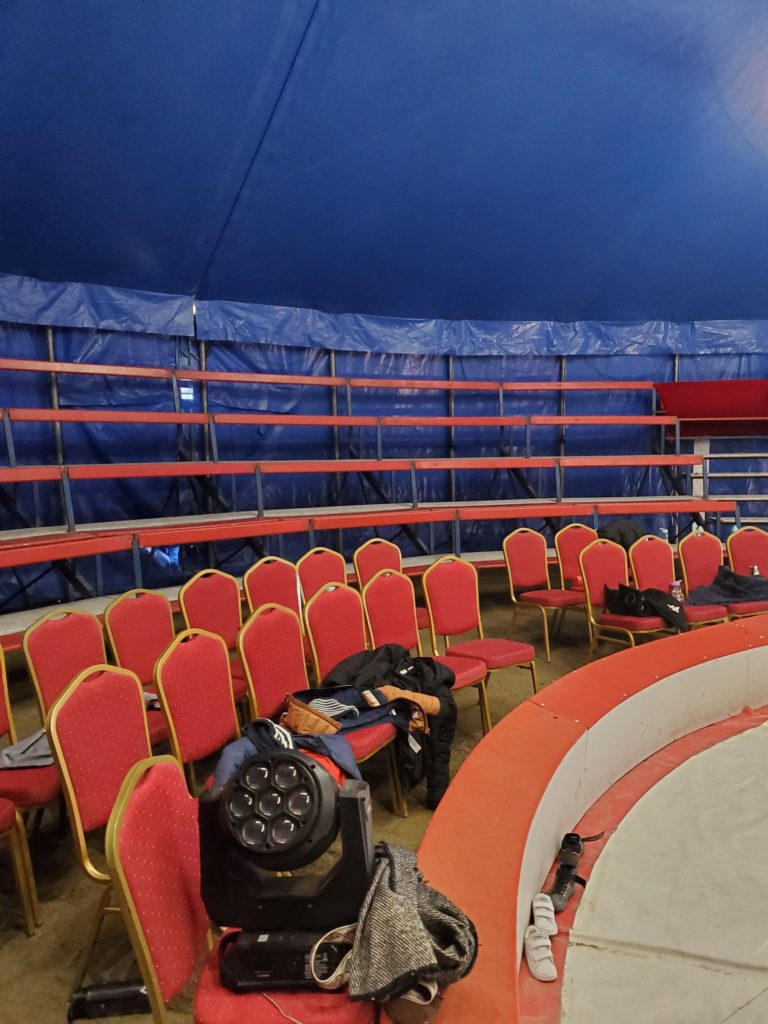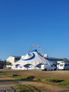 Les gradins sont montés ! Le jour du spectacle approche ! Aujourd’hui jeudi, au programme : on s’entraîne et on fait une répétition sous le chapiteau. Vendredi, c’est la générale : on enchaîne les numéros et on réajuste les derniers détails avant les spectacles de ce soir ou samedi après midi !